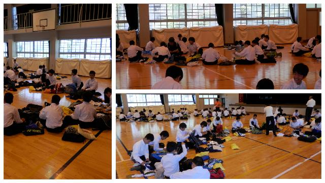 20日から室戸少年自然の家への宿泊学習に出発する1年生の荷物点検です。みんな宿泊学習に向かってわくわくしているようです。