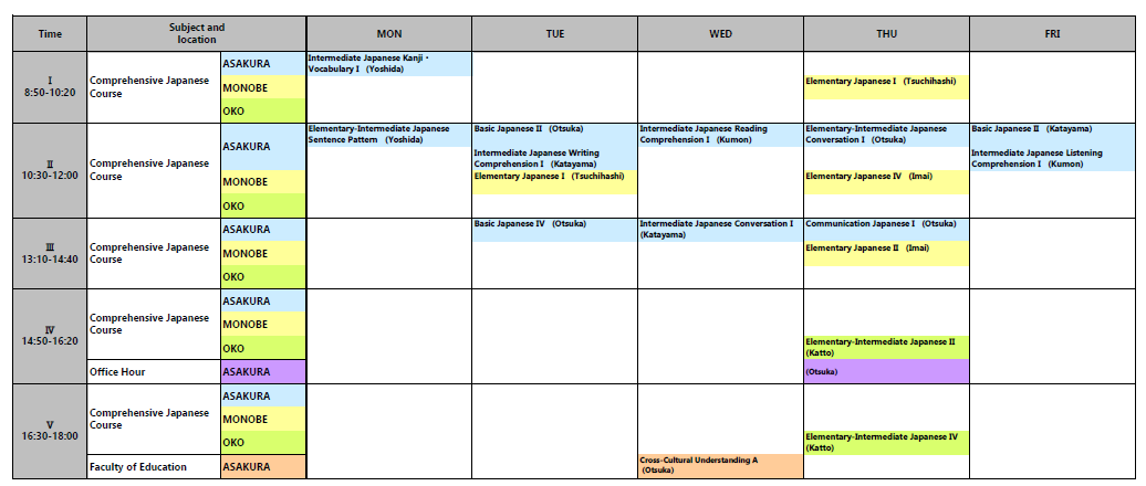We offer courses for international students who are registered at Kochi University. The level of the courses available at Asakura, Monobe and Oko campus may be modified to suit students’ needs.