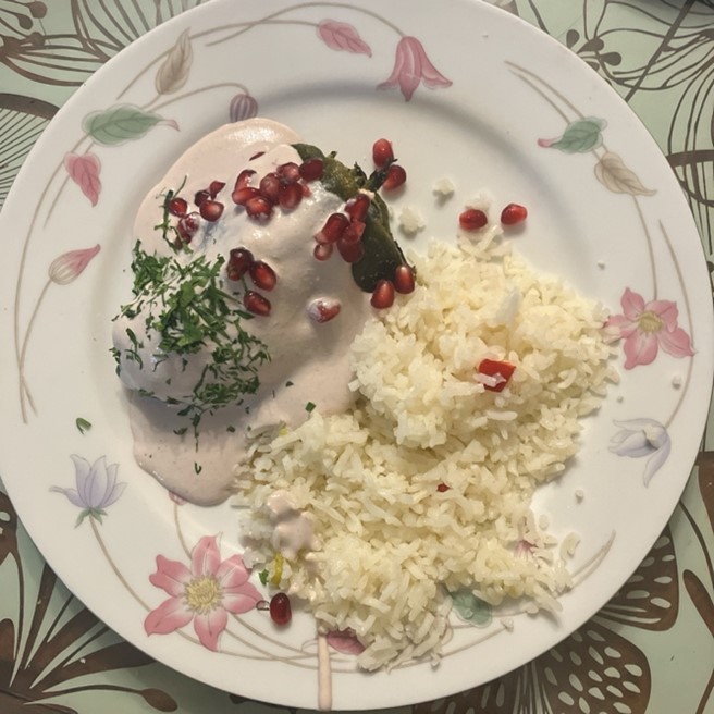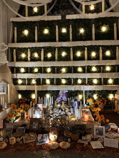 「死者の日」の様子 伝統料理のチレスエンノガダ