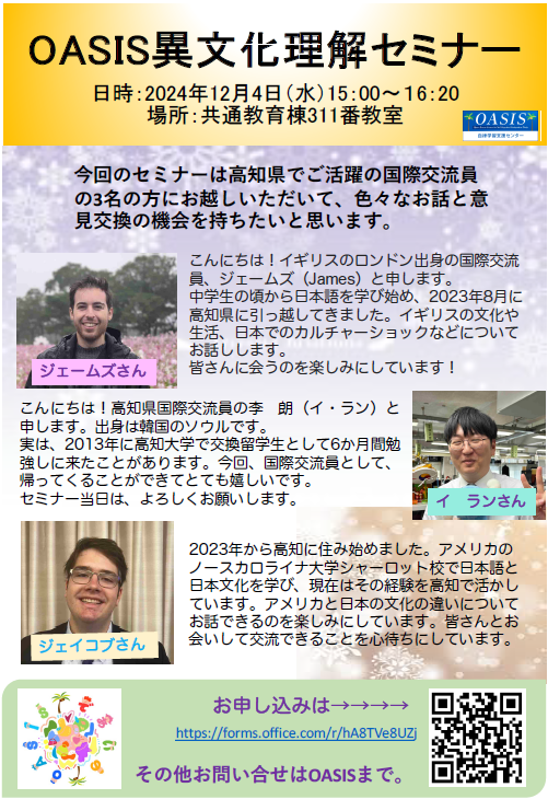 2024年12月4日(水) OASIS異文化理解セミナーのご案内