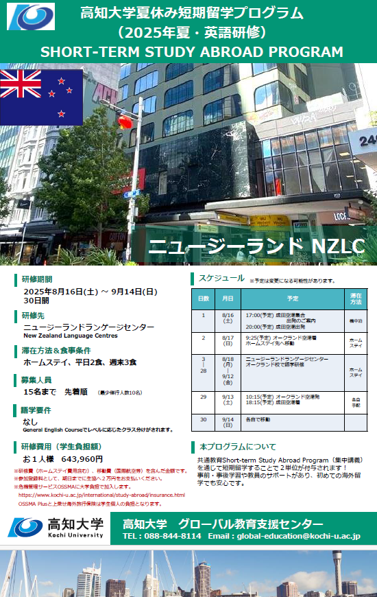 2025年度夏_高知大学英語研修_ニュージーランドランゲージセンター[PDF:1.28MB]