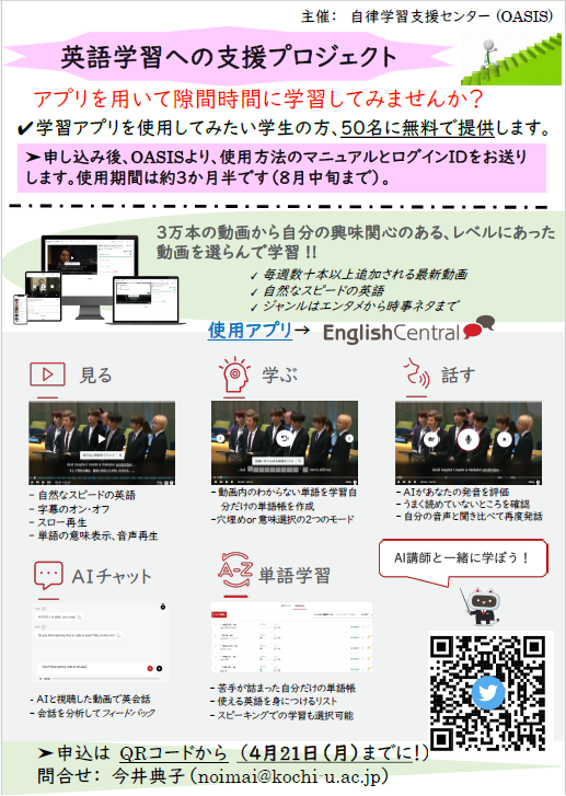 英語力の向上を目指す皆さんに、英語学習アプリのお知らせです。