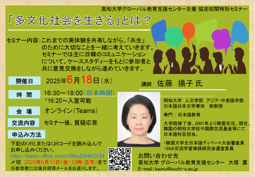 2025年6月18日 グローバル教育支援センター主催 協定校間特別セミナー「『多文化社会を生きる』とは?」のご案内