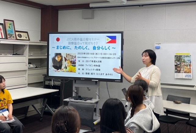 5月14日(水)15時00分〜16時20分、グローバル教育支援センターは、朝倉キャンパスにおいて、本学学生を対象にセミナー「私にもできる国際協力@フィリピン」を開催しました。