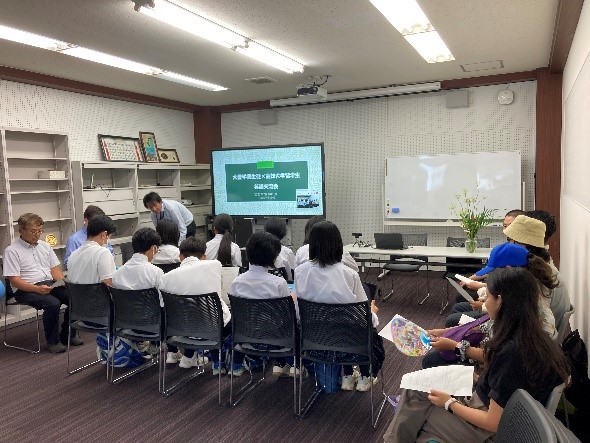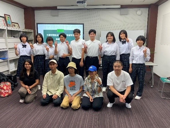 2025年7月10日(木)に、大豊町立大豊学園9年生(中学3年生)14人が実践的な英語教育の一環として高知大学を訪れ、本学の留学生5名と英語で交流しました。今回の活動は、本学の留学生との英語交流の経験により英語表現力を高める機会とするとともに、異文化に触れる経験を通して国際理解を深めるという目的で行われ、インドネシアから3名、ネパール、中国から各1名が交流会に参加しました。