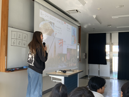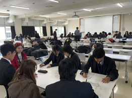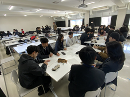 まず、本学の留学生による7ヶ国・地域の紹介と各人の日本語との出会い、日本に来て感じた文化差の発表が行われ、高校生はそれぞれの留学生の出身地の多様性に感心したり、同じアジアの国でも新たな発見があったりして興味深く耳を傾けていました。また、留学生が日本語を勉強し始めたきっかけが自分たちも楽しんできた漫画やアニメであったり、専門の学習や研究するために必要であったりした点に親しみを感じているようでした。文化差についても、「日本人の礼儀正しさ」や「ゴミの分別の細かさ」、「時間の正確さ」など同世代の留学生たちが感じる日本について様々な角度から客観的に考えるきっかけになったという声が聞かれました。