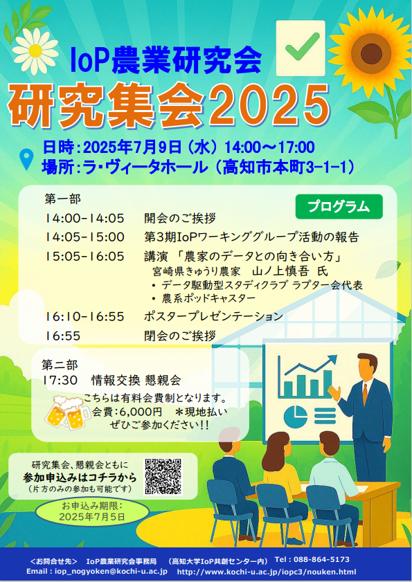 IoP農業研究会2025年度研究集会を7月9日(水)にラ・ヴィータホールにて開催いたします。