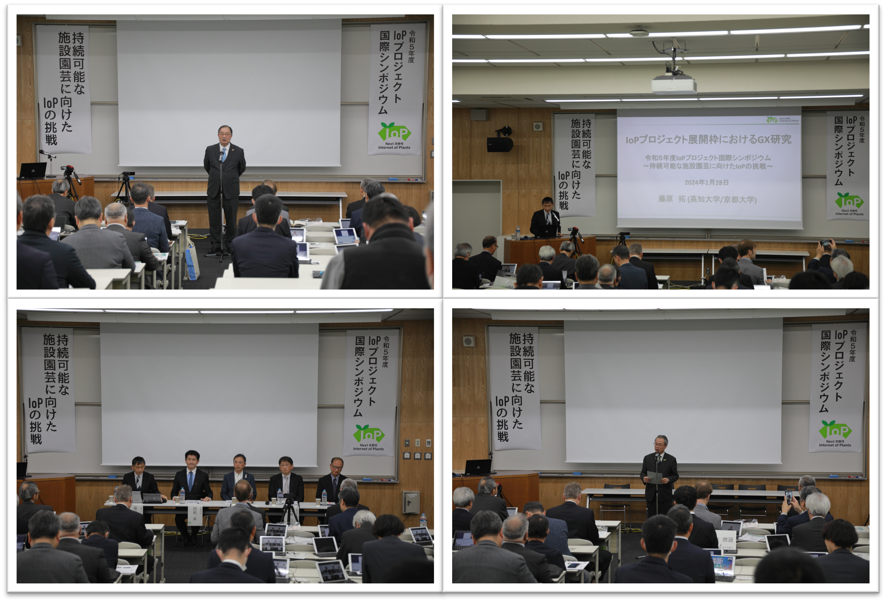 2024年1月28日(日)令和5年度IoPプロジェクト国際シンポジウム~持続可能な施設園芸に向けたIoPの挑戦~が開催されました。IoP共創センターからは藤原特任教授が登壇し、「IoPプロジェクト展開枠におけるGX研究」をテーマに講演を行いました。