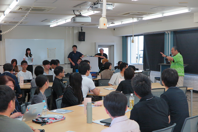 1日目のインタビューを基に、出会った人たちの『希望』を各チームで資料にまとめた後、発表を行いました。谷氏の質問を受けながら、快く応対してくれた高知の方々とのエピソードを交えた発表となりました。