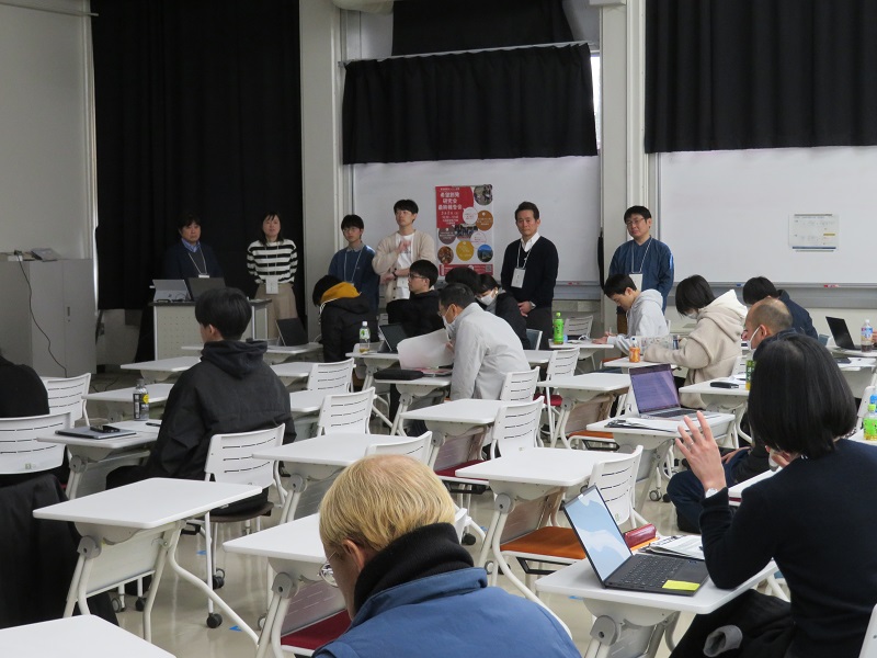 3月2日(土)-3(日)、高知大学希望創発研究会(3月例会(最終報告会)・対面)をハイブリッドにて実施し、高知県内、県外の企業参画者10名、参画学生9名、企業関係者6名、その他関係者20名、一般学生2名の計47名が参加しました。