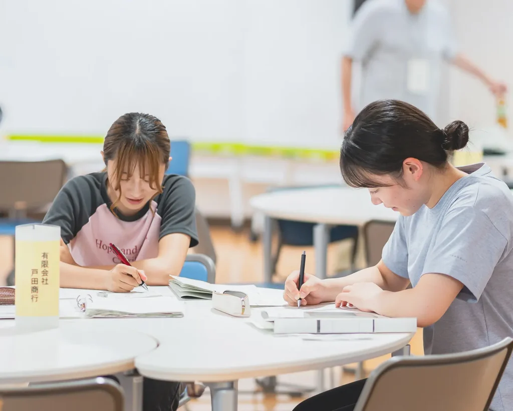 SBインターンシップでは、実際の企業活動の現場でさまざまな職務経験を3人一組で取り組みます。働くことや他者との協働する意味を考え、自分の人生の目的や目標にしっかりと向き合うことができる15日間です。