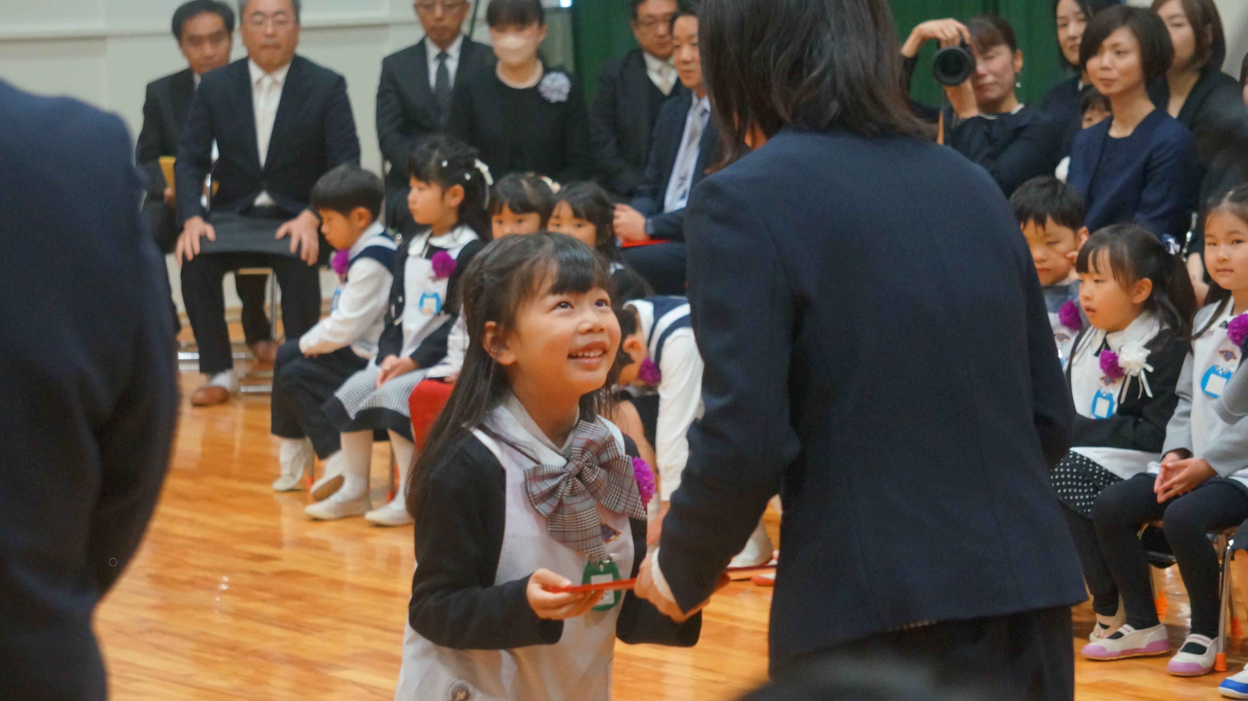 自ら名乗り、終了証書をもらいます。思い出も考えて伝えるなど、立派に卒園する姿を見ていただきます。