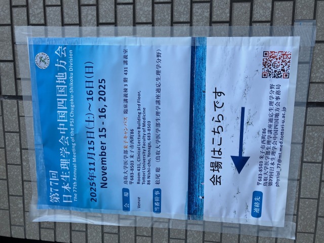 山口教授、清水学内講師、Md Tasnim Alamさん(博士課程大学院生) が第77回日本生理学会中国四国地方会 (2025/11/15-16 米子) に参加しました。 清水学内講師は座長および口頭発表を務め、 Md. Tasnim Alamさん (大学院生) は口頭発表を行いました。 第77回日本生理学会中国四国地方会