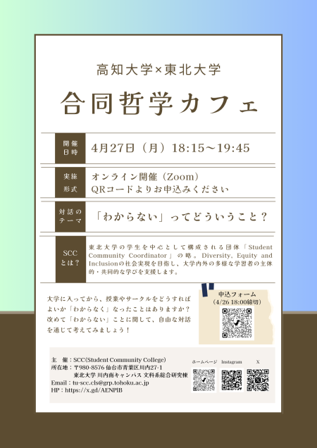 合同哲学カフェ×東北大学「「わからない」ってどういうこと?」を開催します! 2026/4/27