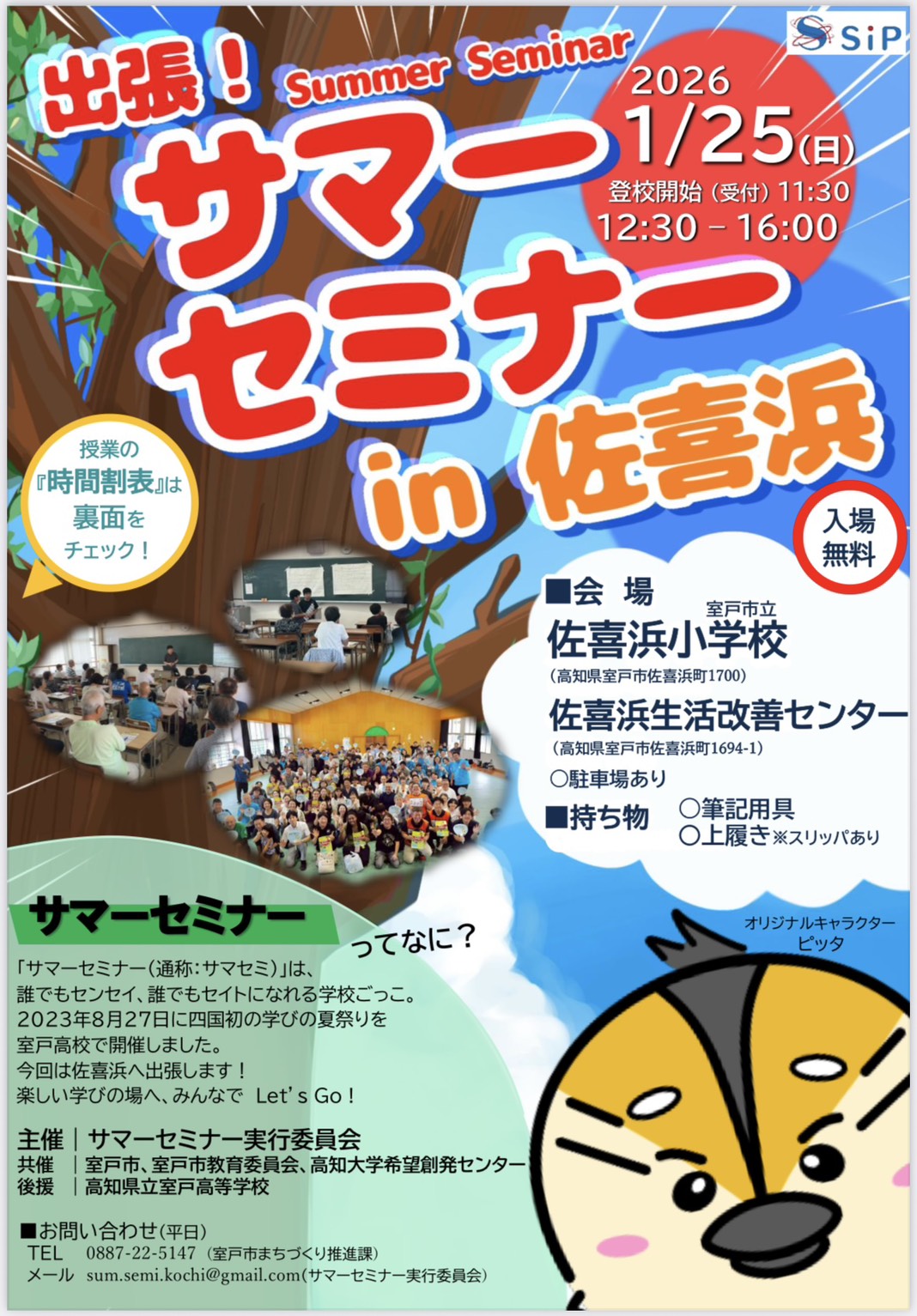 「出張!サマーセミナー in 佐喜浜」開催&時間割のお知らせ 2026/1/25