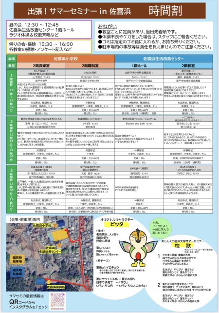 「出張!サマーセミナー in 佐喜浜」の時間割がついに決定しました!🎉