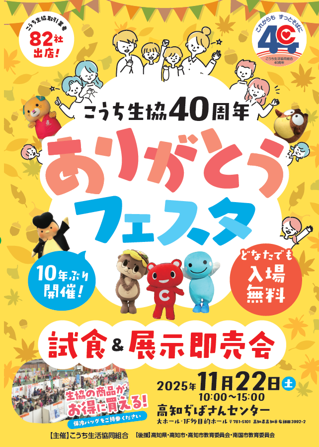 11月25日(土)、高知ぢばさんセンターにて、「こうち生協40周年 ありがとうフェスタ」が開催されます!