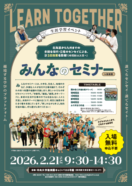 「みんなのセミナー in 後楽園」「みんなのセミナー 交流フォーラム」を開催します! 2026/2/21(土)