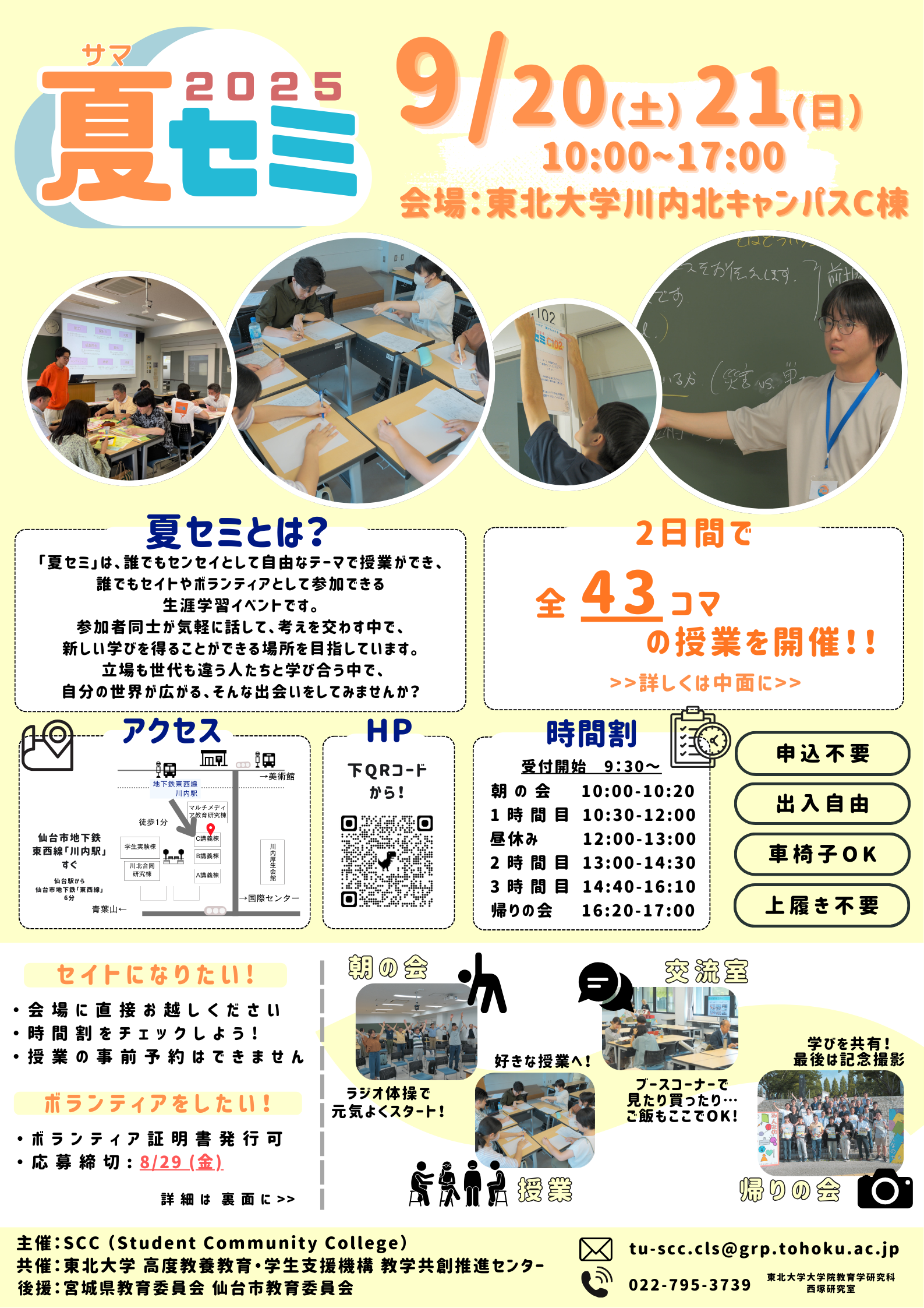 東北大学のサマセミは、リピーターセンセイも多く、各センセイの授業がどんどん進化していっているのを見るのも面白いですね!