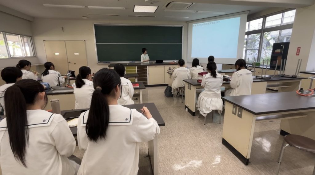 実際に魚を育ててみたセントヨゼフの生徒の皆さんも興味津々で聞いて下さり、大学での研究を体感する時間にもなりましたね!