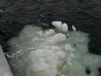 アイスアルジー(氷に付着しながら繁殖する植物プランクトン)が取り込まれた氷も.茶色く見える部分がそれ.