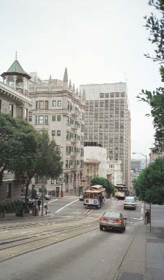 大阪への帰路。乗り継ぎの合間を利用して、サンフランシスコ市内を見学。お役所的に言えば視察ですか?さすが坂の町、坂にケーブルカーが良く映えます。サンフランシスコは小さくまとまっていて、観光地なので歩いている人も多いです。ちょっと安心。ヒューストンよりはだいぶ寒いですが、日本人好みの町です。建物は、坂の上にそのまま立てられています。日本のように削ったり、盛り土をして、水平な土地にしてはいません。