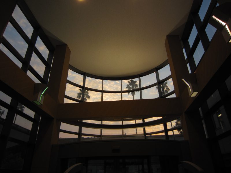 メディアの森の窓から見える夕暮れがきれいだったので、