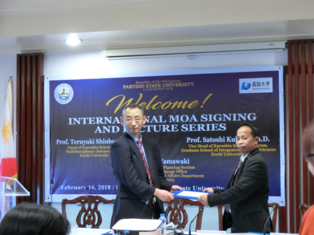 パルティド州立大学は、フィリピン・ビコール地方にある州立大学で、本学とは、黒潮圏総合科学専攻を中心に研究交流を行ってきましたが、今回、同専攻並びに人文社会科学部が申請部局となり、学術交流協定に加えて学生交流に関する覚書も締結しました。今後の更なる交流の発展が期待されます。なお、高知大学としては、フィリピンで3件目の大学間協定となります。