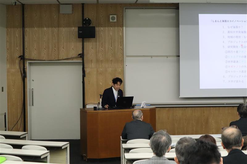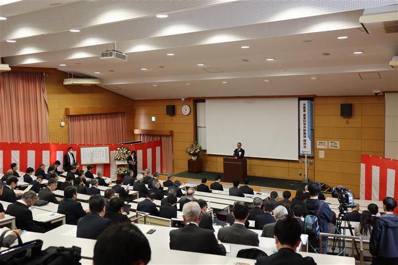120名にも及ぶ多くの関係者がご臨席の中、文部科学省・平野博紀拠点形成・地域振興室長、高知県・ 濱田憲司総括副部長、愛媛大学長・仁科弘重学長から温かいメッセージをいただき、新施設や本学の今後の戦略が紹介されました。