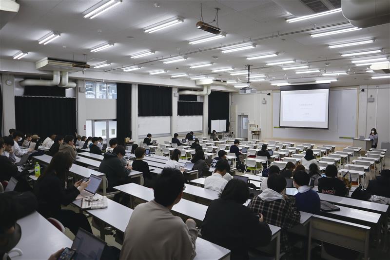 大講義室。座席数220席で授業での利用を中心に、各種イベント、学会講演会等で利用が可能。 映像、音響設備等完備。 |