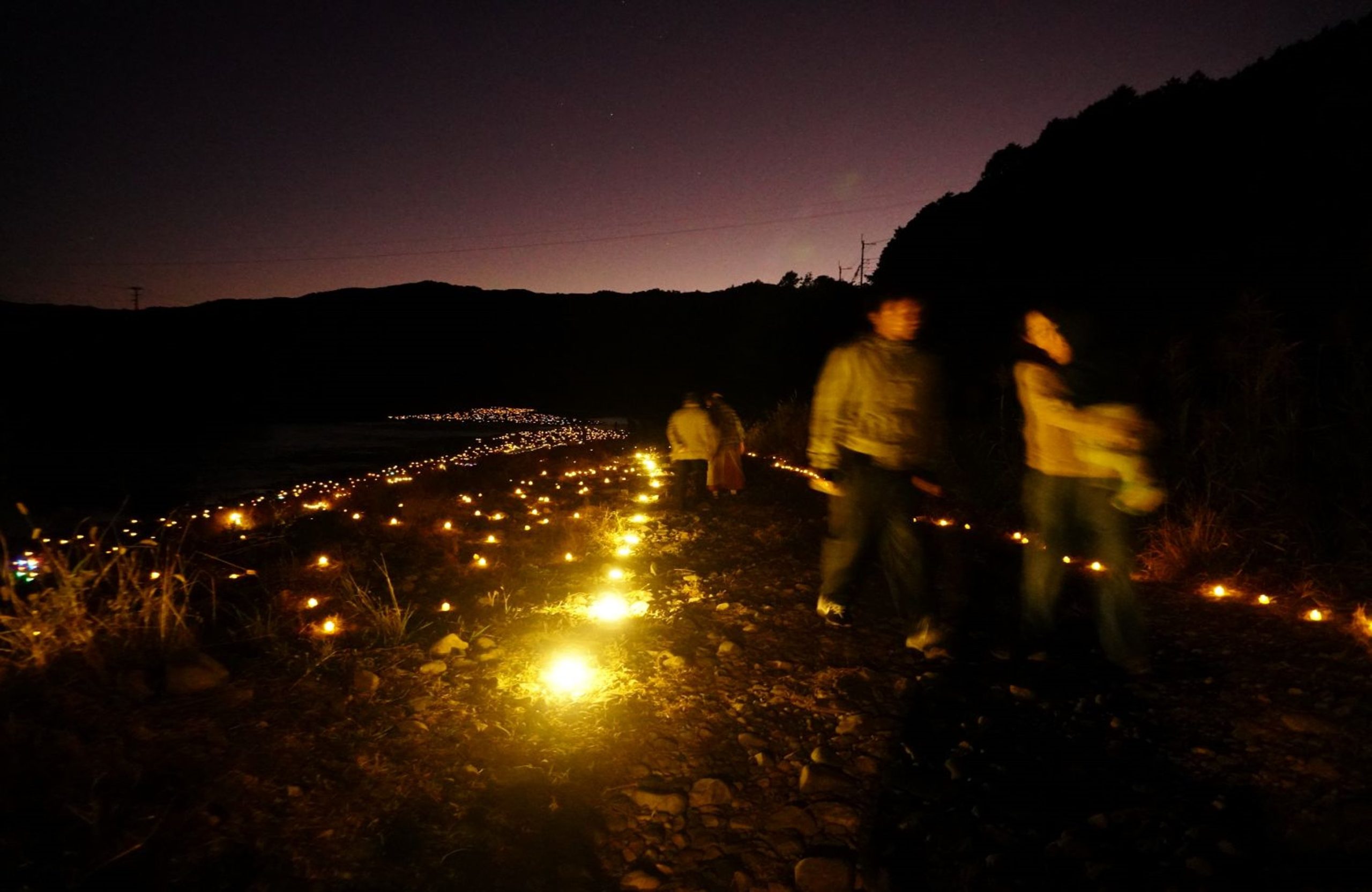 3連休初日とあって、県外からのキャンプ客や家族連れなど約100名が来場し、静かに流れる音楽とともに四万十川ならではの幻想的な夜を楽しみました。