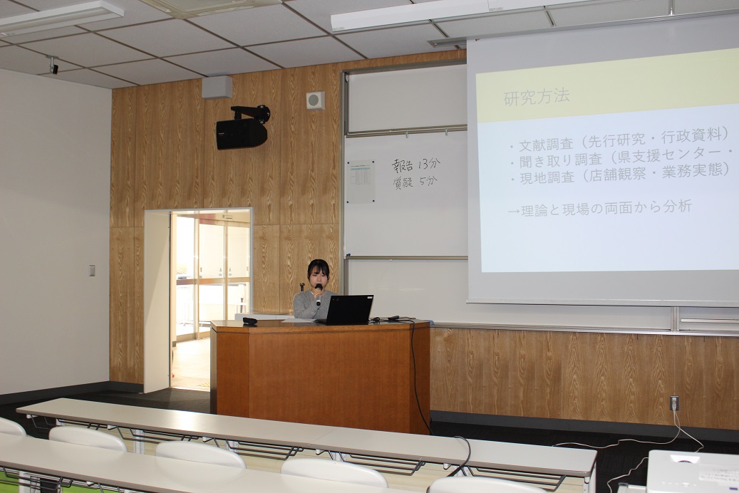 報告会では、学生一人ひとりが自身の関心やこれまでの学びをもとに研究を進めてきたテーマについて発表しました。調査や実践を通じて積み重ねてきた成果が、それぞれの言葉で丁寧に語られました。
