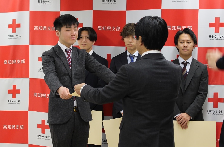 この行動に対し、日本赤十字社より表彰状が授与されることとなり、3月24日に表彰式が行われました。