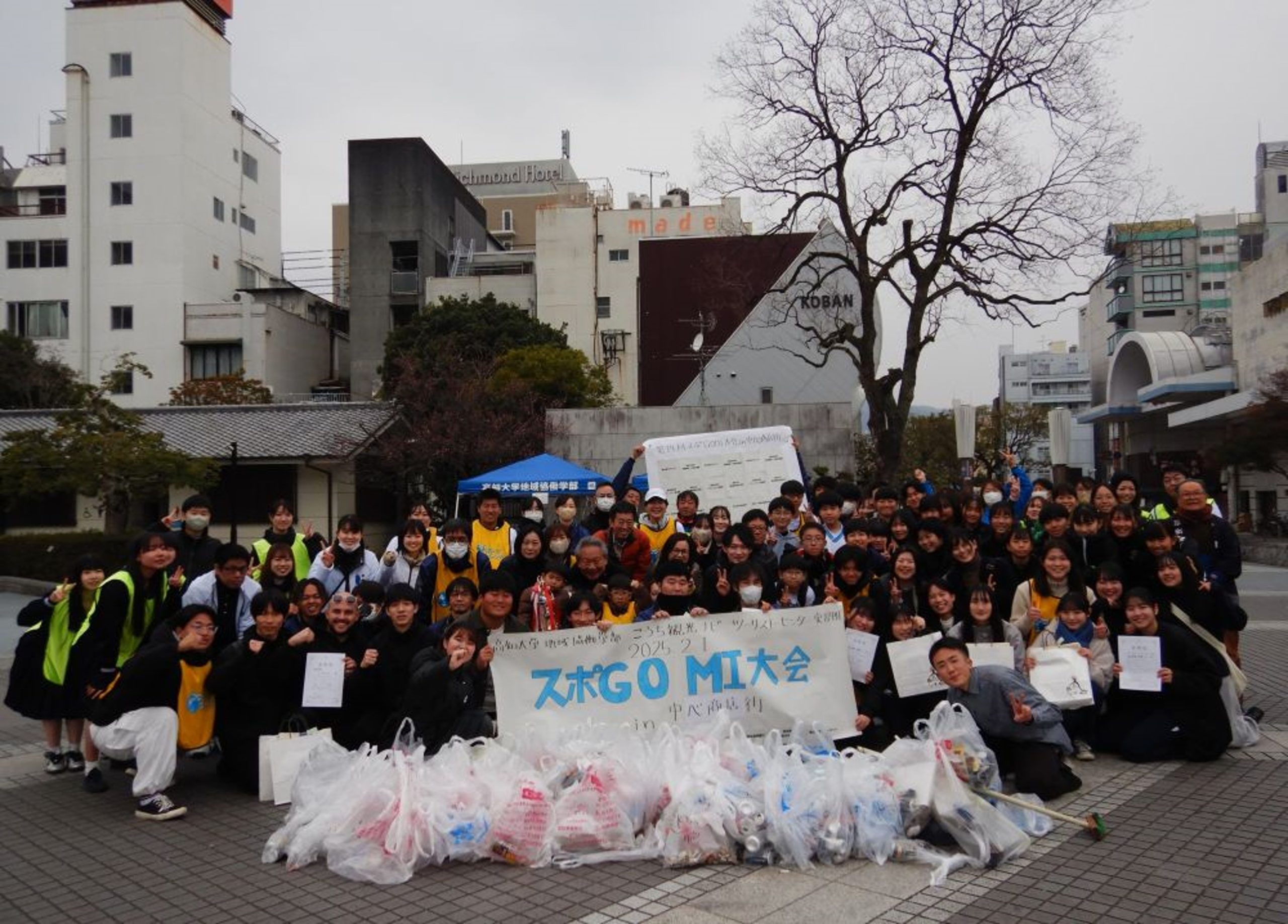 2月1日(土)、高知市の東洋電化中央公園で「第14回スポーツGOMI拾い大会~ごみを拾って好きな人のハートも掴め!~」を開催しました。こうち観光ナビ・ツーリストセンー実習班の学生2名は、2学期に入るとすぐ協賛企業を募り、チラシを持って報道各社を回るなど競技参加の呼び掛けに奔走し、高知市や商店街との調整等々と怒涛の4か月間でした。大会当日も天気が心配されましたが、17チームが集めたゴミは 27.645 ㎏。スタッフと競技参加者の100名は気持ち良い達成感を得ました。