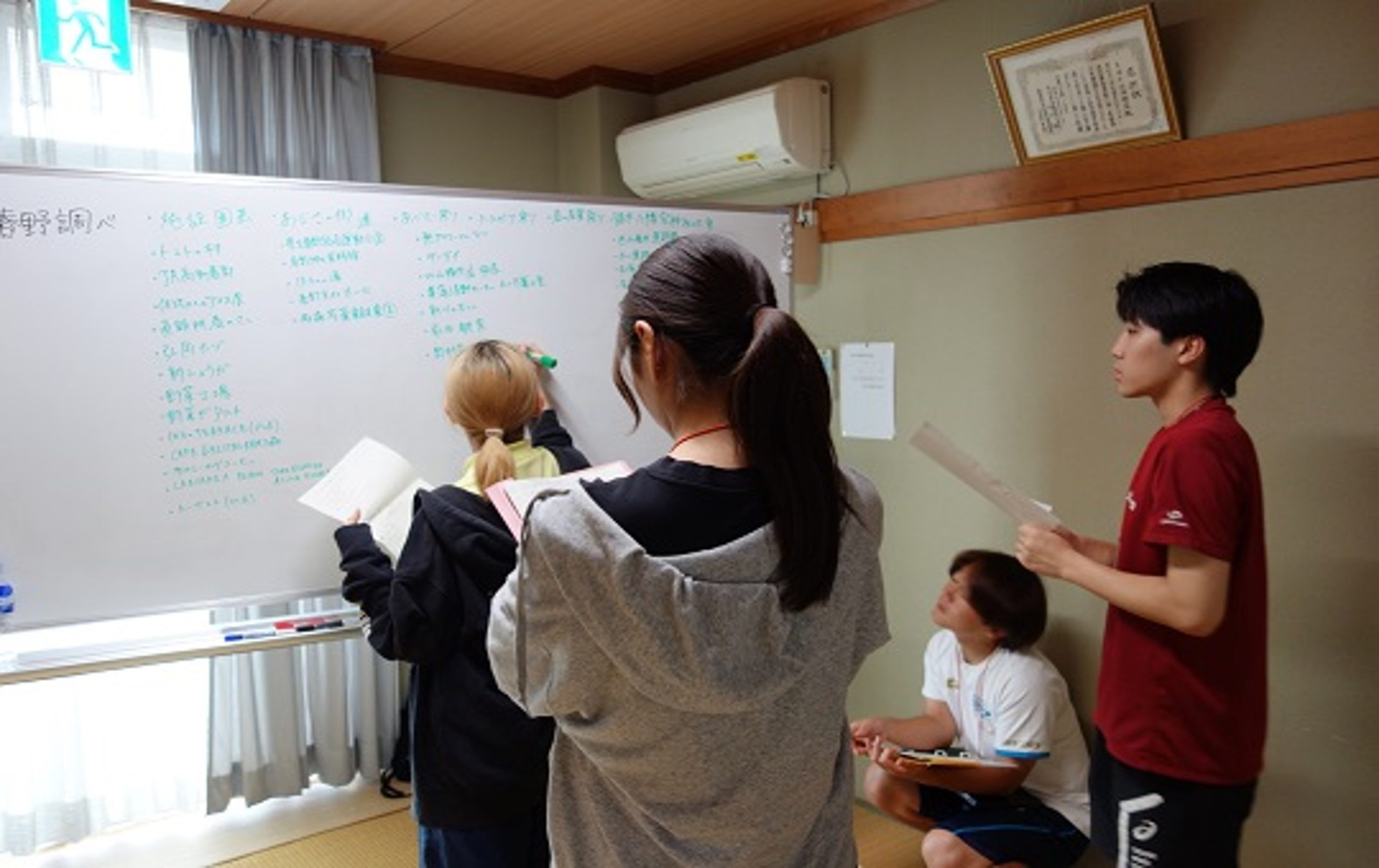 午後は、2年生は春野について各自が調べてきたことをまとめて発表し、3年生からコメントやアドバイスをもらいました。3年生は、自分たちが考えている防災企画に関連して、地域の方々の防災意識について回答して頂いたアンケート調査の集計作業を行いました。実践的な学びを深めた一日となりました。