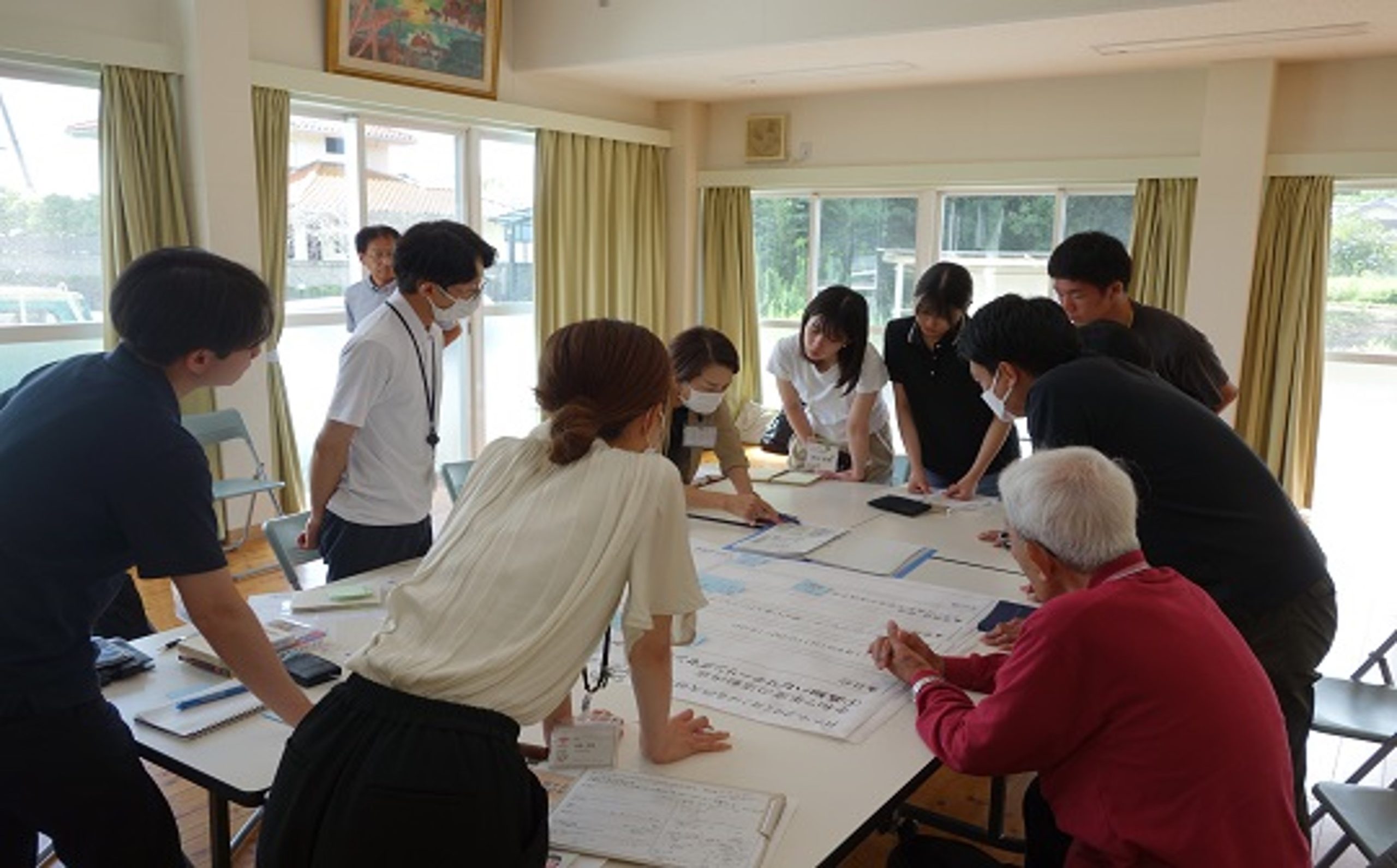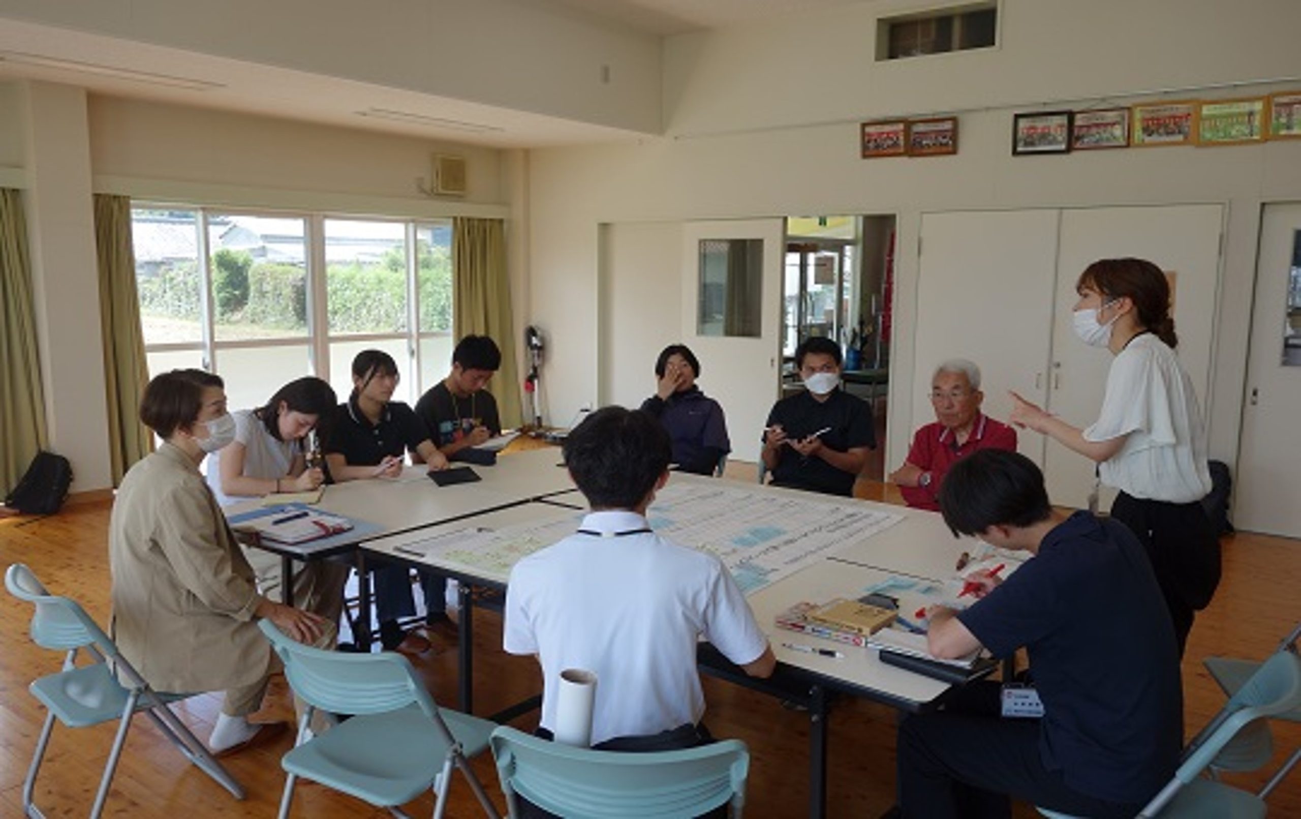 この日は、実習受入組織「はるの大好き! スズメ元気会」の「防災交流部会」に参加し、11月9日に開催予定の地域の「秋祭り」へのブース出展について話し合いました。