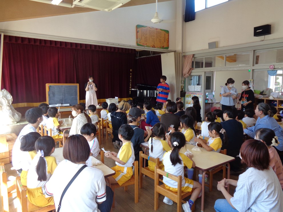 10月17日(金)と10月21日(火)、1年生実習「地域協働総合実習入門」で(株)高南メディカルと連携している学生たちが、同社が給食事業を提供している幼稚園で行われた食育活動の見学とお手伝いを行いました。