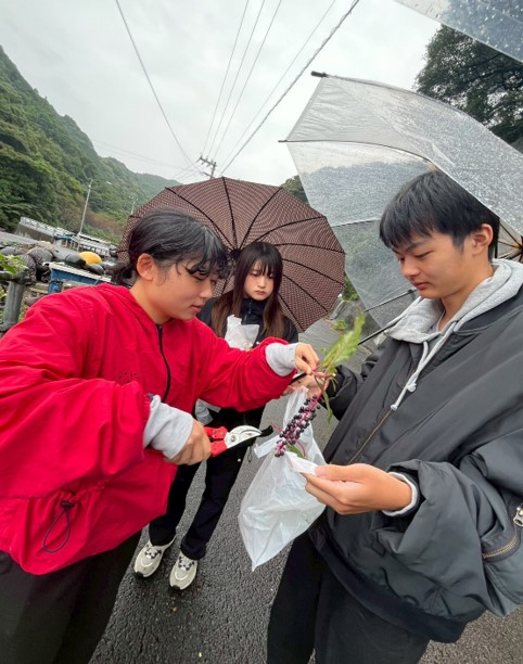 また、地域の方々との棚田管理に関する情報共有を行いました。さらに、今後の企画で活用するための草木染めの材料採集も実施。秋の山里で自然の色を探しながら、地域資源の活用について学びを深めました。