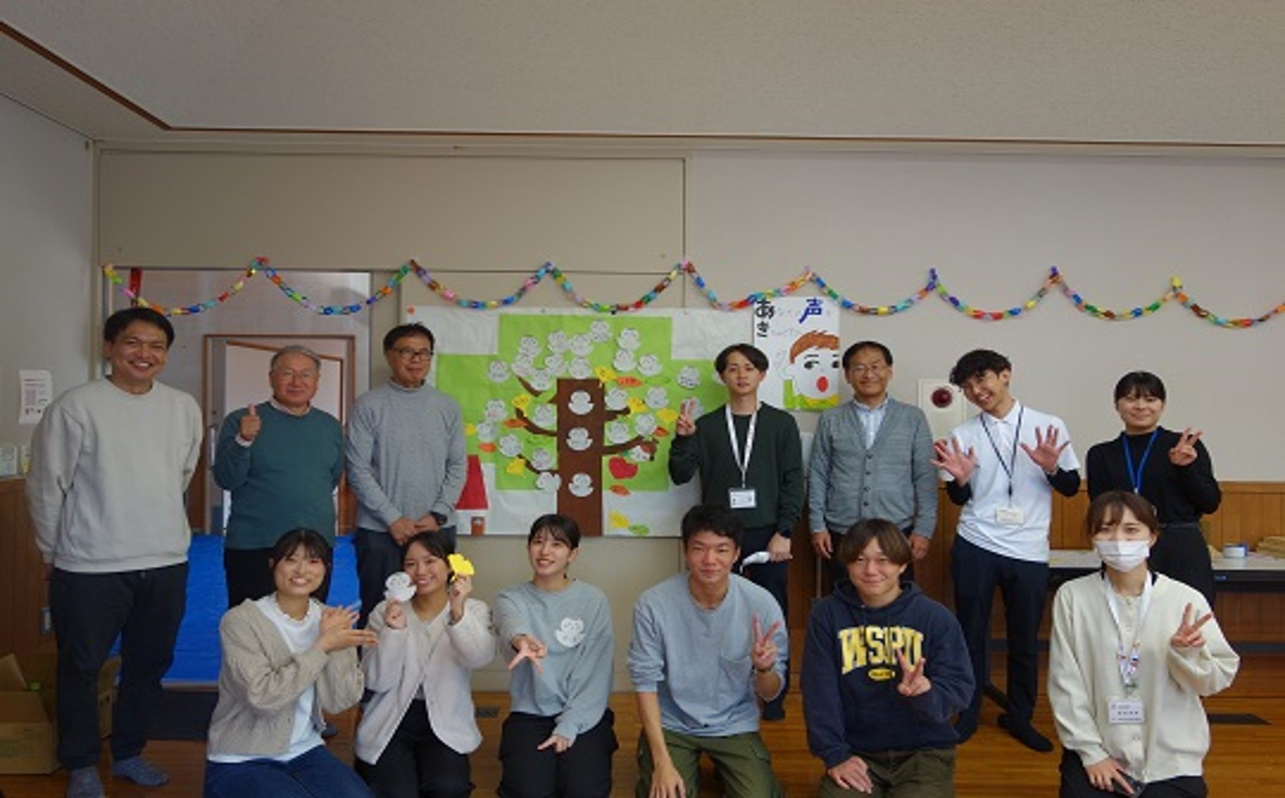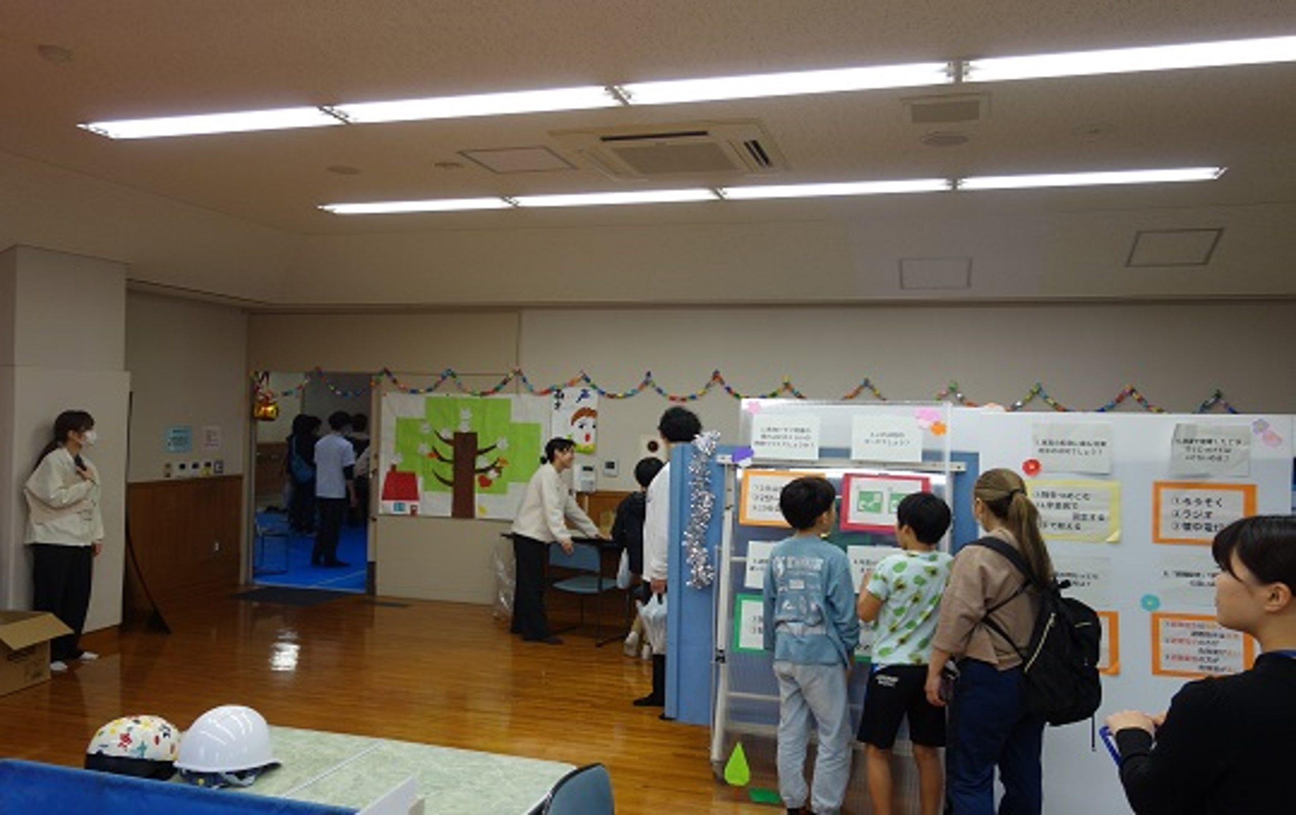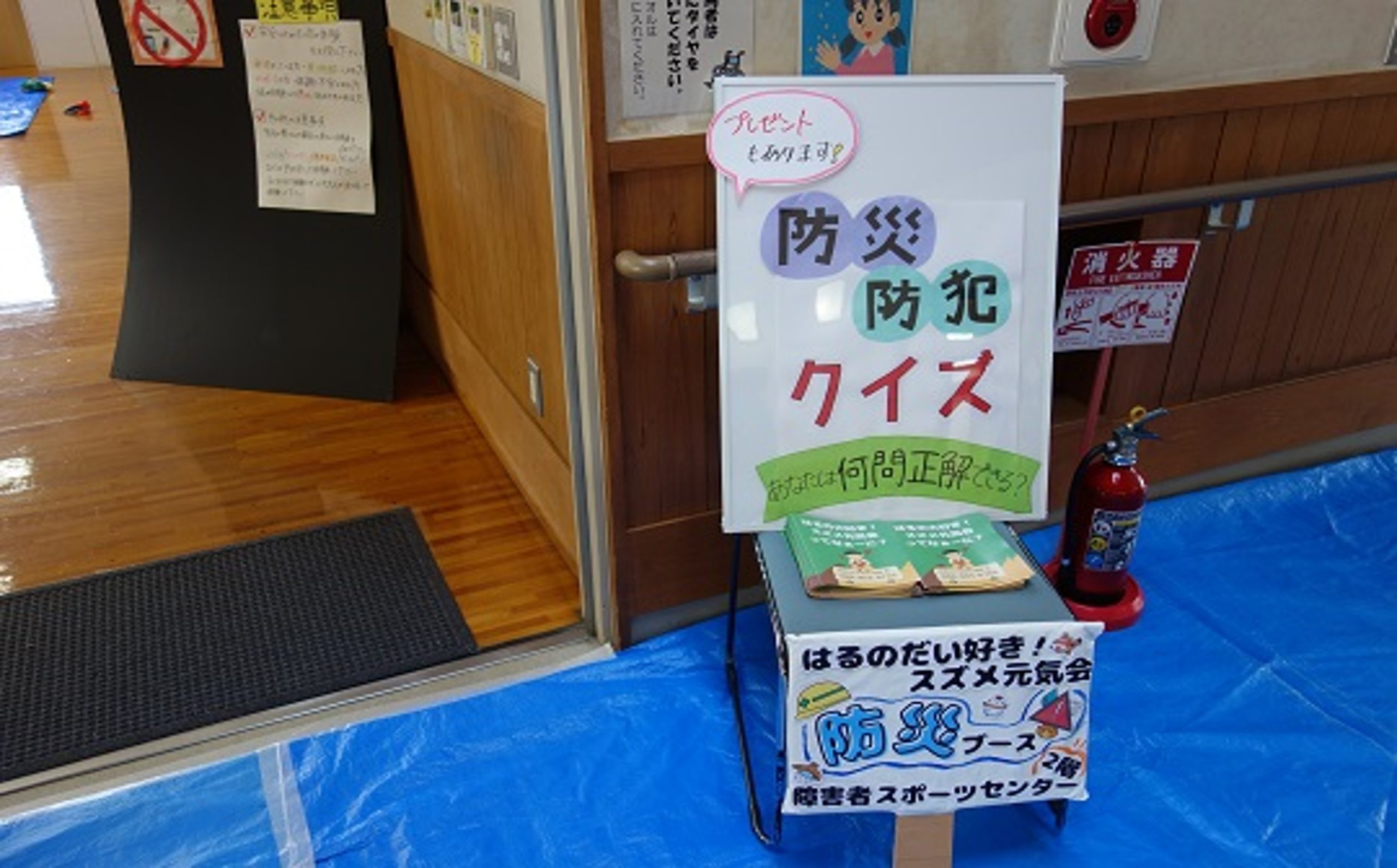 この日は、地域の障がい者スポーツ・リハビリ関連の「秋祭り」において、実習受入組織「はるの大好き!スズメ元気会」の「防災交流部会」として、防災関連ブースを出展しました。