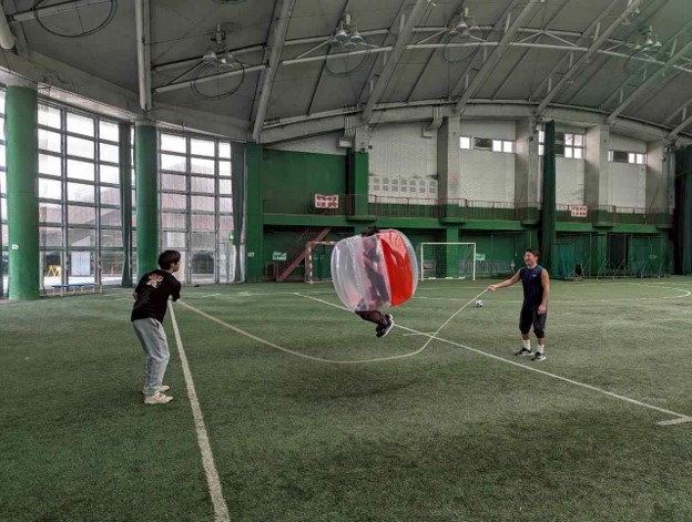 11月11日、高知FD実習班はよさこいドームで、バブルボールを使ったスポーツイベントの試行を行いました。