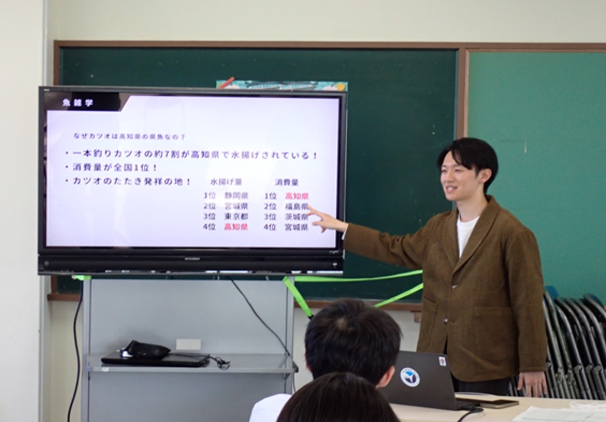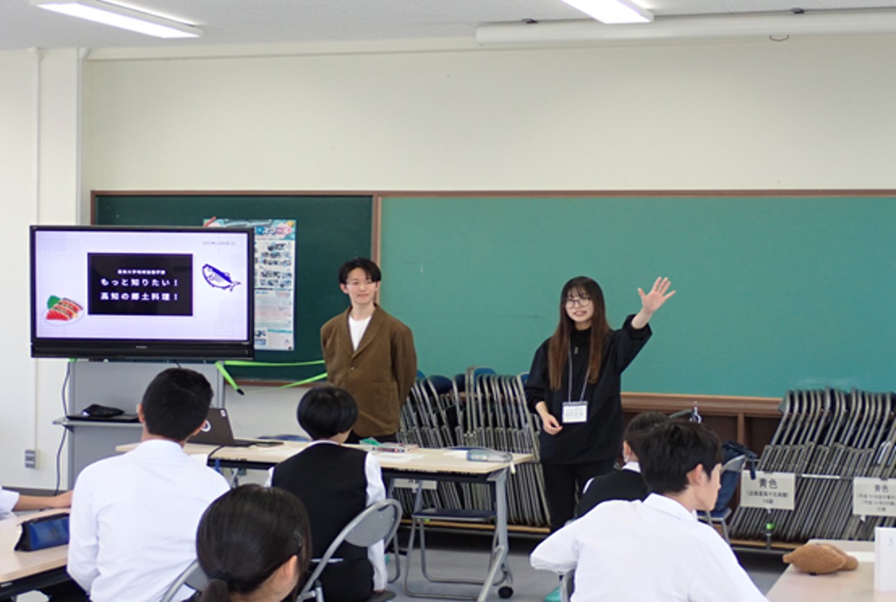 学生たちが企画したテーマは「もっと知りたい! 高知の郷土料理」。かつおやウツボなど、高知ならではの食文化について楽しく学べる内容で、生徒たちは興味津々。
