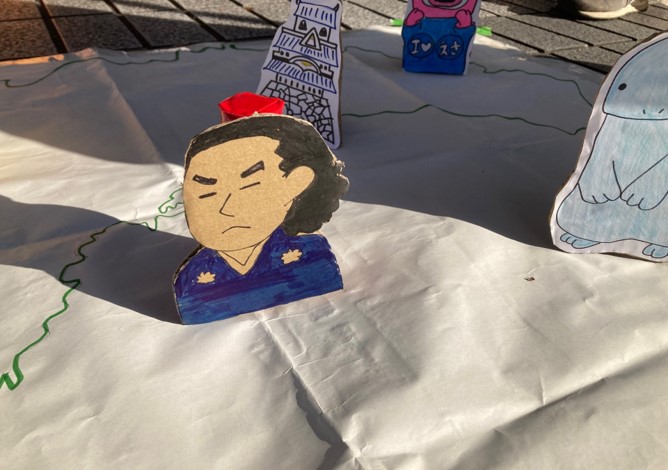 11月15日(土)、こうち観光ナビ・ツーリストセンター実習班は、坂本龍馬の誕生日と命日にあわせて商店街で開催された龍馬生誕祭に、輪投げブースで出店しました。