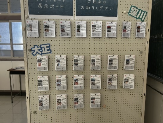 11月22日、窪川高校の文化祭で、窪川高校生と制作した「てくてくカード」と「まちとこマップ」の展示・配布を行いました。