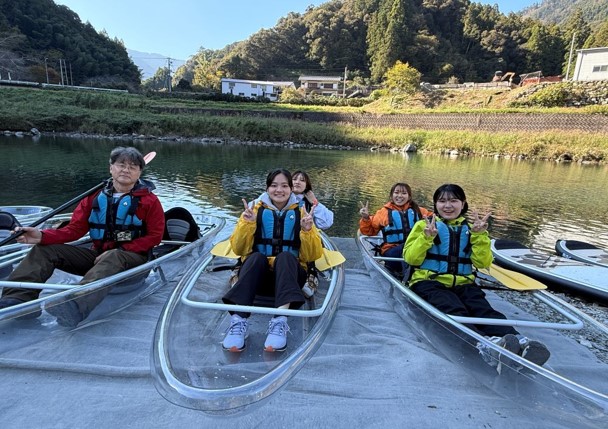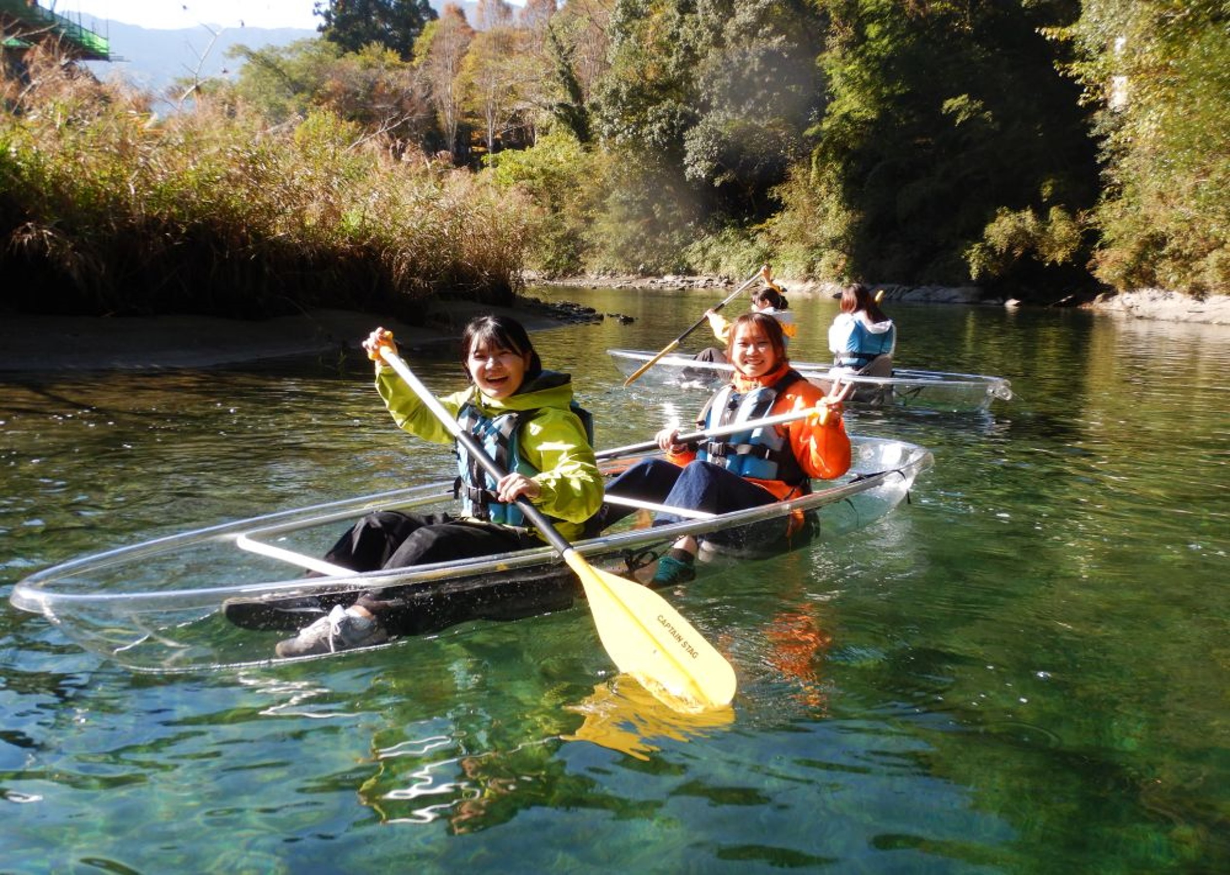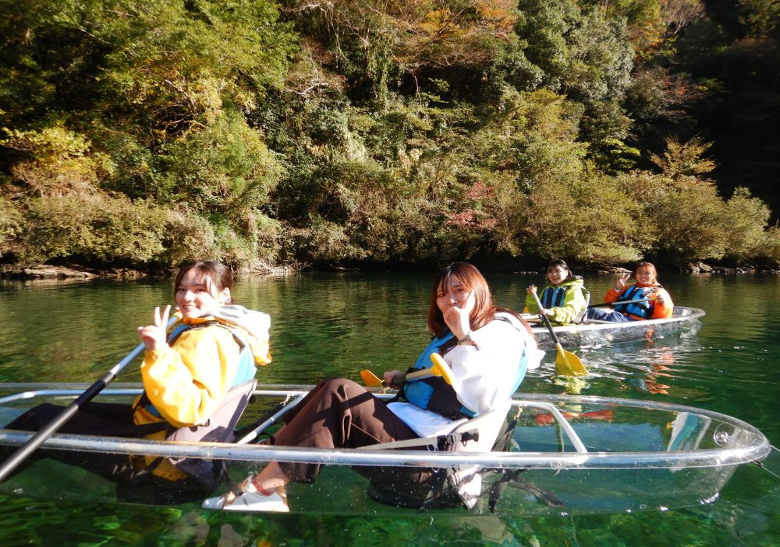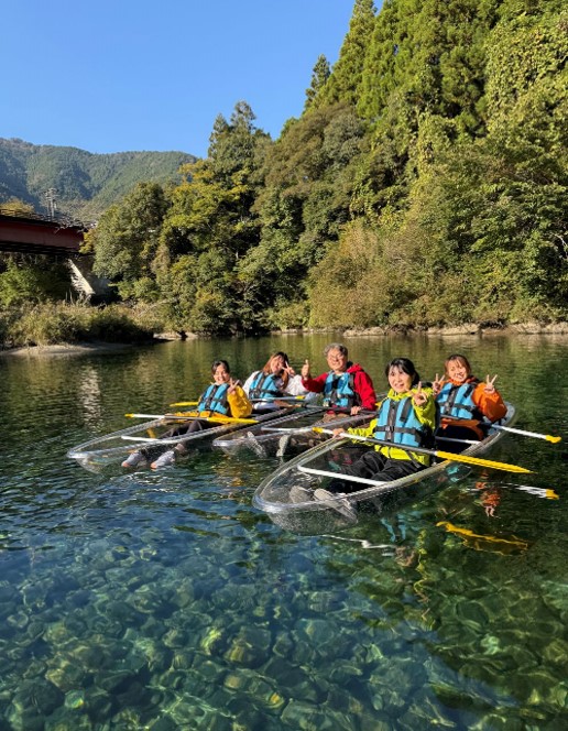 11月14日、こうち観光ナビ・ツーリストセンター実習班は、高知で人気のアクティビティを自分たちの目で確かめるため、仁淀川アウトドアセンターでクリスタルカヤック体験を行いました。