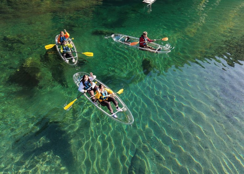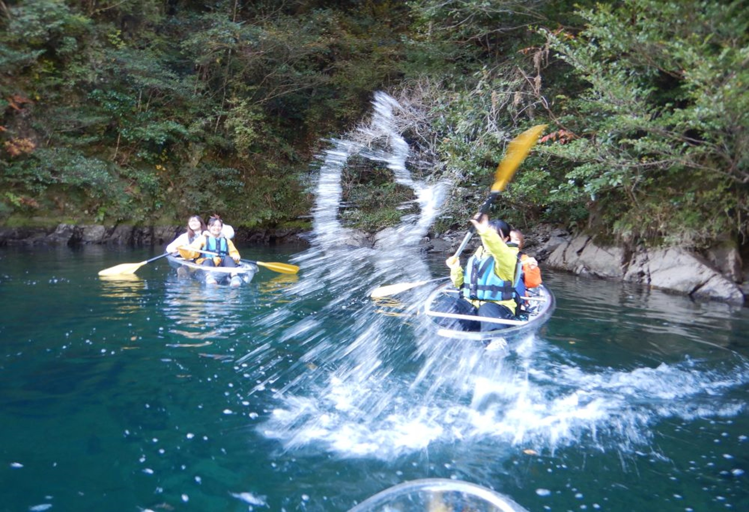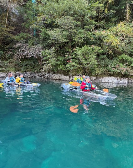 その後、透明なカヤックに乗り込み、いよいよ仁淀ブルーの世界へ。
