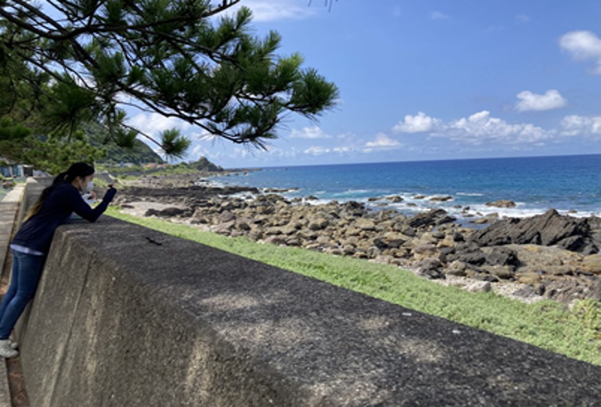 夏の青空と室戸の海が輝く8月5日、室戸実習班は椎名集落活動センターで行われた「よみがえる風景 室戸の記憶写真展」最終日に参加しました。翌日に試験を控える学生たちでしたが、これまで多くのご支援をいただいた地域の方々への恩返しになればと、試験勉強道具を片手に会場で待機しました。