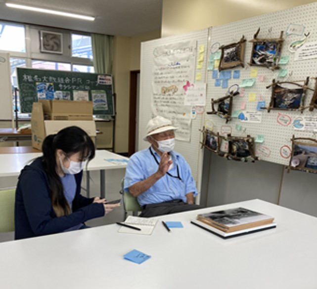 展示では、「たのしいな」の川島さん・仙頭さんのアイデアで、地域の方から教わったことを付箋に書いて展示ボードに貼り足していきました。最終的には、学生が準備したキャプションを上回る数の付箋が集まり、地域の暮らしや祭事、大敷の営みなど、次世代へ伝えたい記憶が豊かに積み重なりました。
