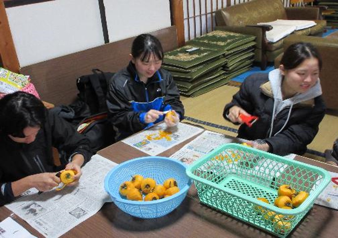 HOME > 学部からのお知らせ > 授業風景 > 吊るし柿づくりと薬草園看板を制作しました(大豊町東豊永実習班) 吊るし柿づくりと薬草園看板を制作しました(大豊町東豊永実習班) 授業風景2025年12月04日 10月31日、大豊町東豊永実習班は、地域で受け継がれてきた秋の作業に取り組みました。午前は、吊るし柿づくりの下準備として、柿の皮むきや紐に通す作業を行い、冬の保存食づくりに触れました。 午後は、地域の薬草園で使用する看板の製作に挑戦。訪れる人に分かりやすい案内となるよう工夫しました。 Tweet < 前のページヘ 次のページヘ > サイトマップ プライバシーポリシー