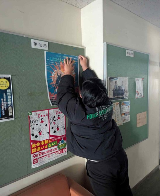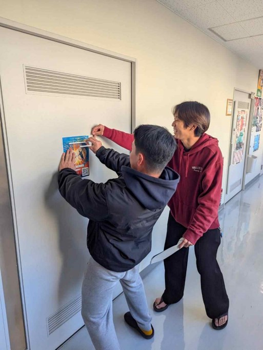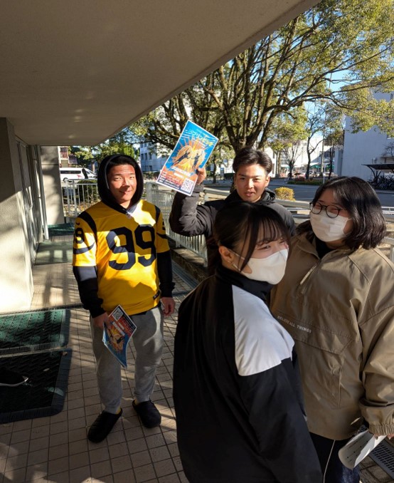 HOME > 学部からのお知らせ > 授業風景 > 学生の力でイベントを盛り上げる!バブリンピックPR始動(高知ファイティングドッグス実習班) 学生の力でイベントを盛り上げる!バブリンピックPR始動(高知ファイティングドッグス実習班) 授業風景2025年12月11日 12月9日、高知ファイティングドッグス実習班は、来年2月8日に開催予定のイベント「バブリンピック」に向けて、県内の大学や専門学校を訪問しました。 学生たちは、構内へのポスター掲示をお願いしたり、通りがかった学生に直接声をかけて参加を呼びかけたりと、イベント周知と参加者確保に積極的に取り組みました。 今回の活動を通じて、多くの学生に興味を持ってもらう手応えを感じる一日となりました。 本番に向け、引き続き準備を進めていきます。 Tweet < 前のページヘ 次のページヘ > サイトマップ プライバシーポリシー