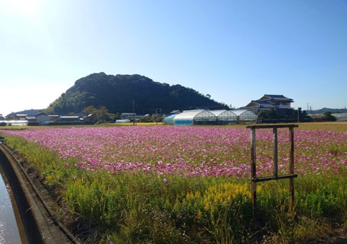 また、学生たちは耕作放棄地を活用して育てたコスモス畑を訪れ、満開の花を鑑賞しました。